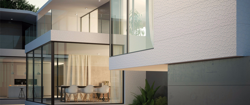 Sử dụng: như một lớp ốp bên ngoài hoặc mặt tiền với các mô hình, quy mô lớn tạo ra hiệu ứng mạnh mẽ, dù gần hay xa.