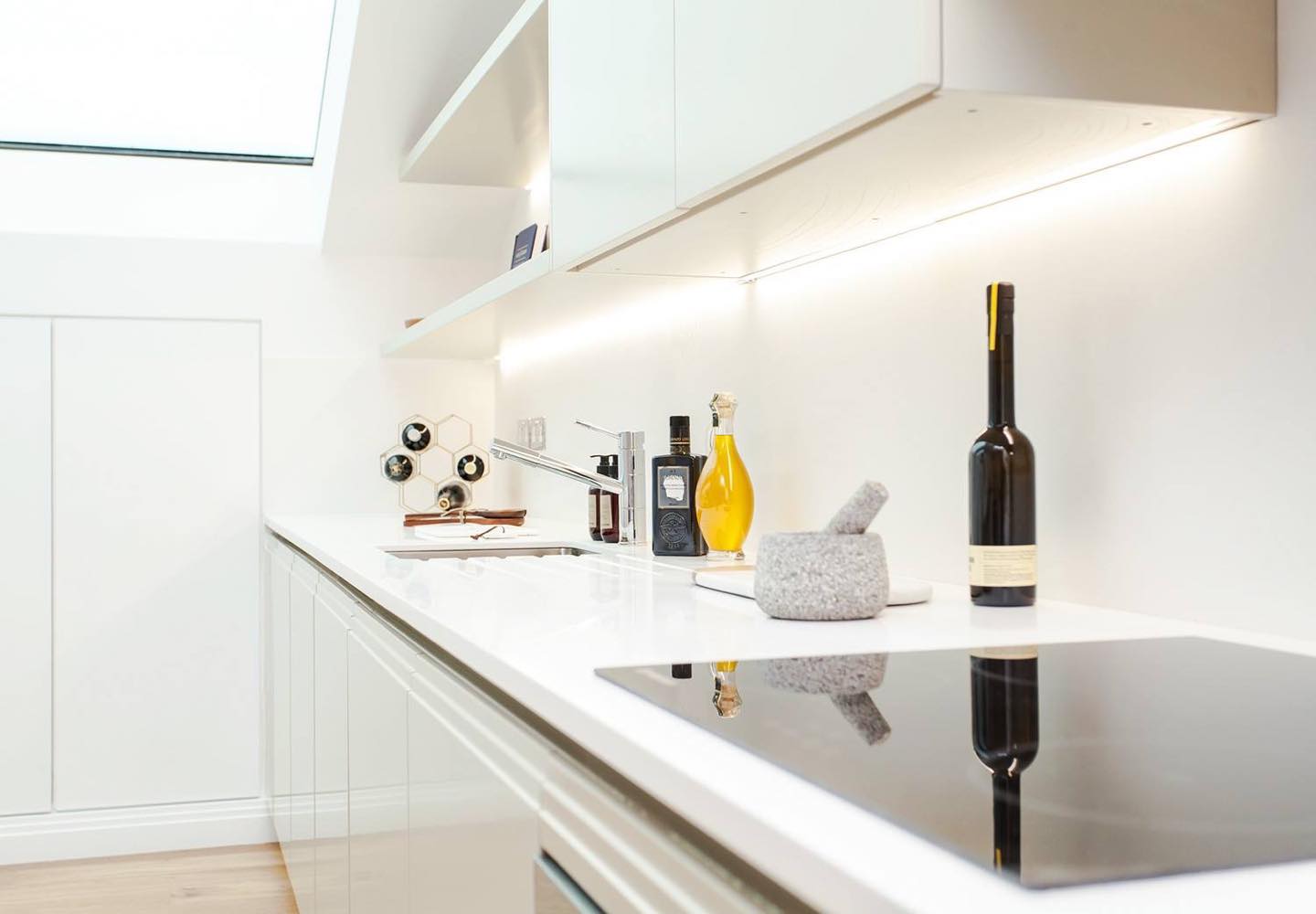 Kết hợp đá bếp màu trắng cho thiết kế tủ bếp tông tỏ