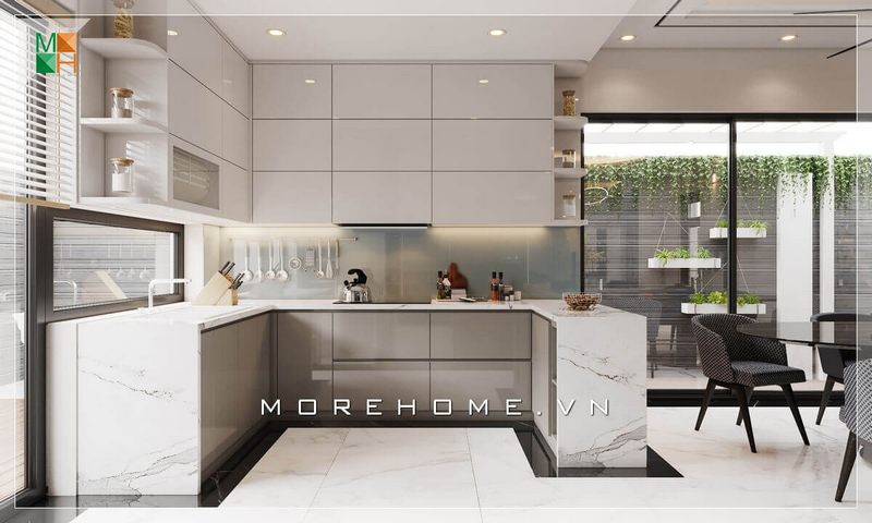 , tạo nên một không gian bếp hiện đại và sang trọng. Bạn sẽ cảm thấy đầy cảm hứng và động lực để nấu ăn khi biệt thự, nhà phố của bạn được thiết kế phòng bếp sang trọng, tiện nghi với đá trắng vân mây được sử dụng nhiều. Nó cảm thấy cứng cáp và bền đẹp, tạo nên một không gian bếp hiện đại và sang trọng.