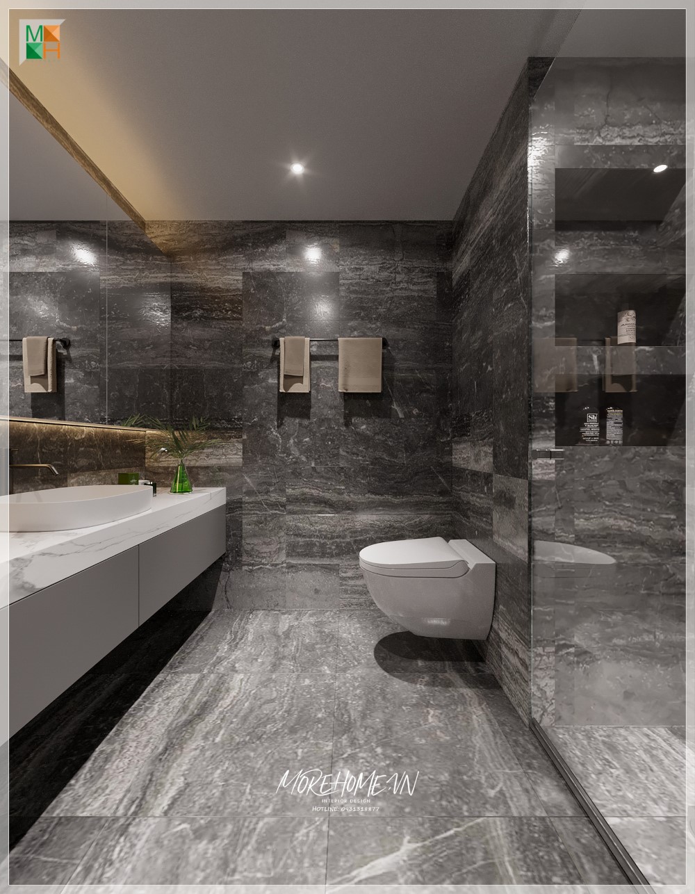 Màu xams vân mây của đá ốp tường hiện đại tạo nên không gian sáng, sang và có độ thẩm mỹ cao, dễ dàng cho việc dọn dẹp vệ sinh.