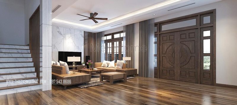 Mẫu cửa chính phòng khách gỗ tự nhiên sang trọng, đảm bảo chắc chắn và tiện nghi trong quá trình sinh hoạt, sử dụng